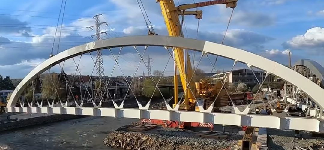 GALERIE FOTO. Se montează arcele la podul Oașului-Răsăritului. Investiția totală este de peste 22 de milioane de lei