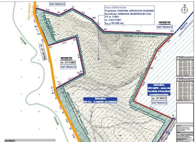 Proiectantul a cerut introducerea în intravilan a unei suprafețe de 10 hectare, în localitatea Feleacu, pentru construirea Campusului Montesssori.