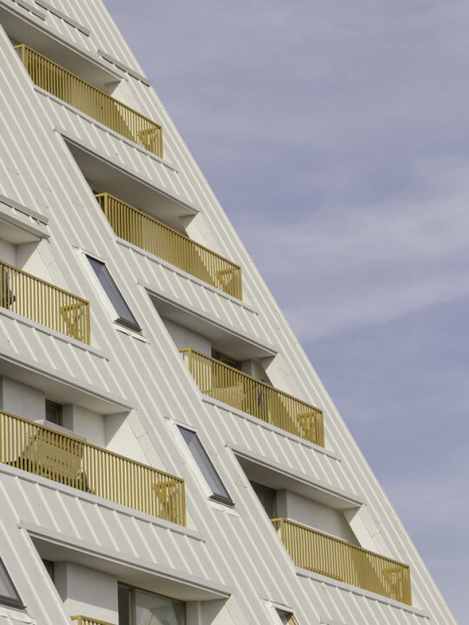 În ceea ce priveşte conceptul arhitectural, proiectul reinterpretează şarpanta tradiţională, volumetric asimetrică şi sculpturală, respectiv adaptează atât exigenţele regulamentului local de urbanism, cât şi preocupările pentru orientare, lumină naturală şi diversitate de tipologii de locuit.