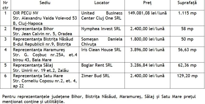de lei/lună, adică aproximativ 30.000 de euro/lună, reprezintă chiria pe care o plătește statul român, prin contribuabilii săi, pentru sediul din Cluj-Napoca, strada Alexandru Vaida Voievod, nr. 53; sediul din Cluj al MIPE se află în clădirea United Business Center Cluj One și are o suprafață de 1.115 de metri pătrați