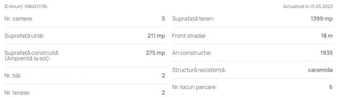 Designul interior și exterior unicat, zona exclusivistă precum și posibilitățile multiple de recompartimentare, extindere sau construire reprezintă aspecte esențiale pentru oricine își dorește o locuință unicat sau o oportunitate de business aflată la doar 5 minute de centrul orașului”, se arată în anunțul agenției.