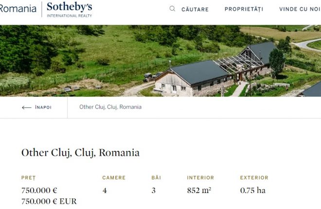 Cunoscuta agenție Romania Sotheby’s International Realty, specializată în intermedierea proprietăţilor de lux, a scos la vânzare un domeniu situat la circa 50 de kilometri de Cluj- Napoca.