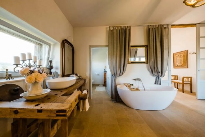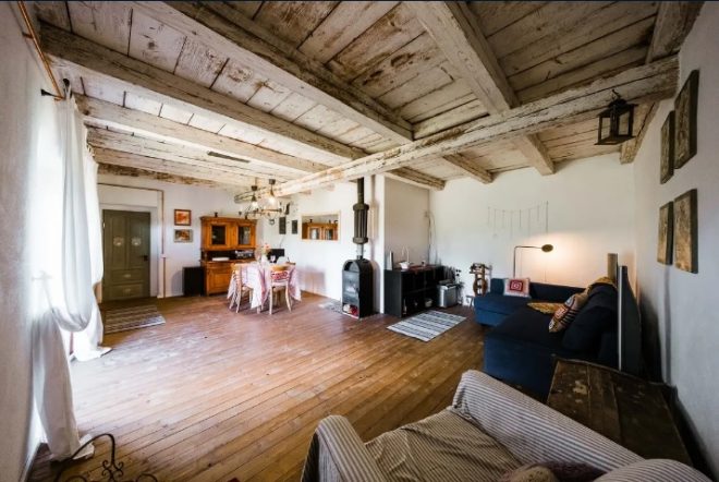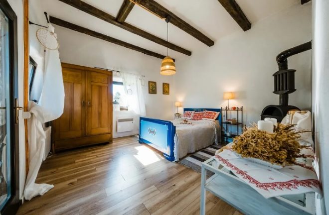 Piesele de mobilier și ușile pictate, pernele brodate cu motive tradiționale sau prezența godinului sunt detaliile atent alese pentru a păstra specificul locului în condițiile confortului modern.
