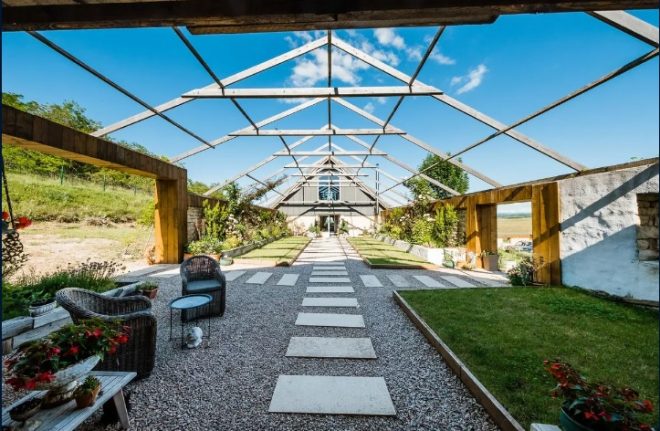 Cea de-a doua construcție din vechea fermă este utilizată ca atelier de creație și depozit. Fosta șură, generoasă ca suprafață, este folosită ca garaj pentru 2 sau 3 autoturisme.
