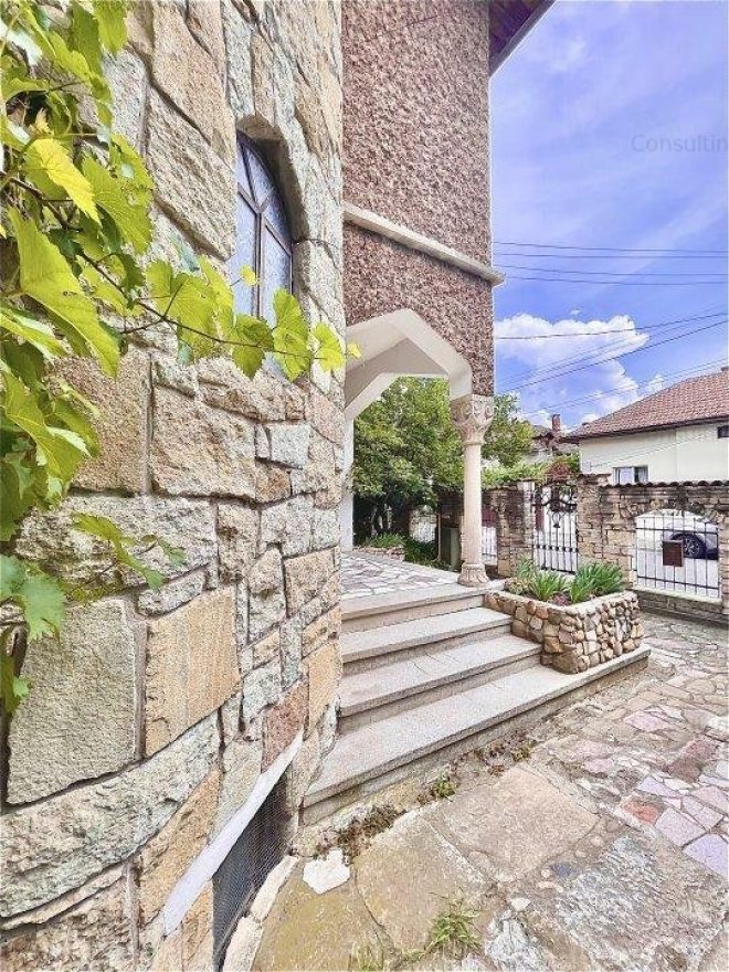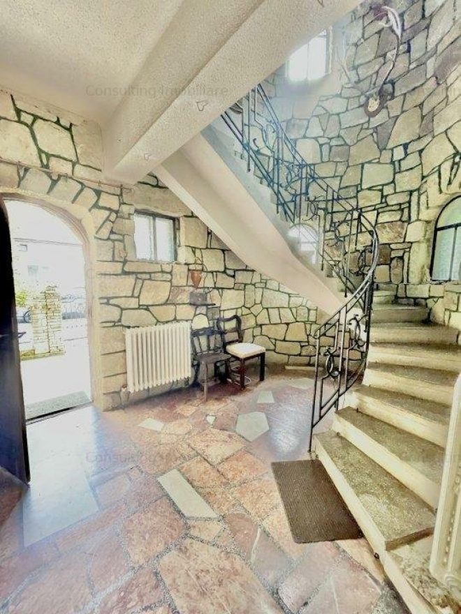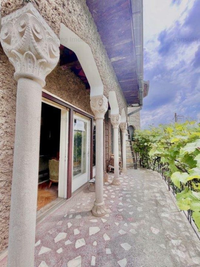 Aspectul masiv al clădirii, arcade, coloane, turnul ce te întâmpină la intrarea în casă. Camere de 3 și 4 m înălțime, parchet din lemn masiv, piatră, tavane personalizate.