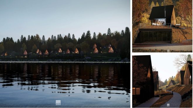 Complex turistic cu 12 case de vacanță pe malul lacului. Va avea zonă de închiriat ATV-uri