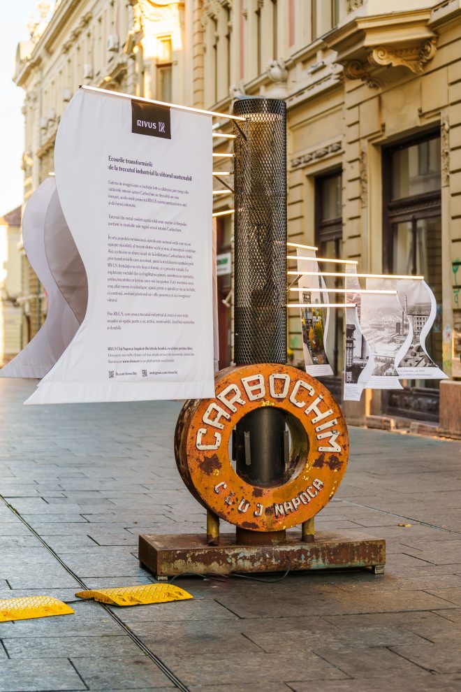 Instalația „Ecourile transformării: de la trecutul industrial la viitorul sustenabil” este o galerie de imagini, care marchează trecerea simbolică de la istoria industrială a uzinei Carbochim către noua etapă de dezvoltare, reprezentată de RIVUS, cel mai amplu proiect de reconversie urbană din România. În prima etapă a acestui demers, IULIUS a relocat fabrica Carbochim într-o zonă pretabilă producției industriale și a investit 7 milioane de euro pentru optimizarea și eficientizarea activității, care nu a fost întreruptă.