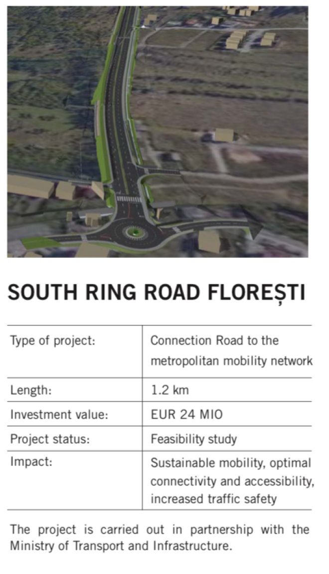 „Este un proiect complementar cu centura, dar separat. Este drumul de legătură sud, care se varsă în tronsonul 1 al centurii”, a declarat edilul comunei Florești. Tronsonul 1 este în fapt DN1, care se lărgește la 6 benzi între nodul N și viitorul spital regional.