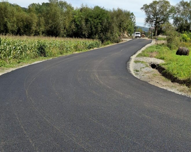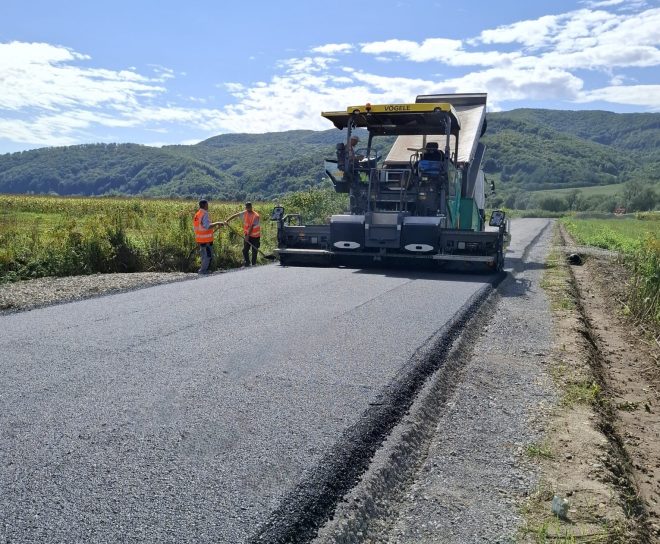 FOTO. Asfalt pe un sector de drum județean. „În scurt timp, vom finaliza un drum care se va dovedi extrem de util pentru cetățenii din zonă”