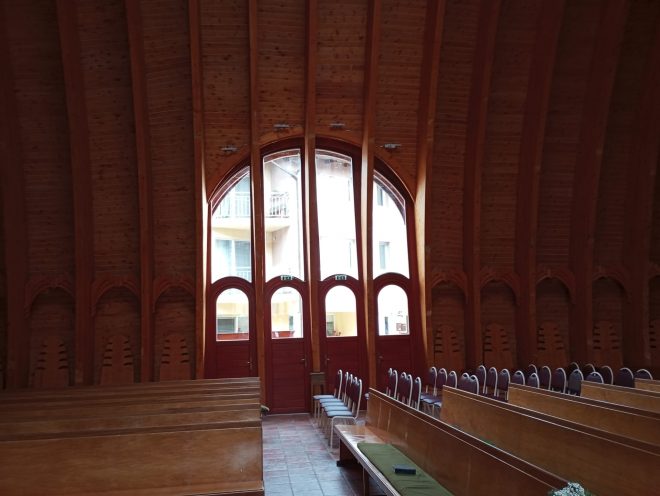 „După ce au fost montate arcele, a urmat lucrul la interior. Au fost niște etape care trebuiau rezolvate. Marea noastră întrebare a fost cum vom încălzi biserica, pentru că arhitectura ei nu permitea asta, dat fiind că e din lemn. Și atunci ne-a venit ideea să facem încălzire prin pardoseală. Iar pentru proiectul ăsta, ne-a ajutat guvernul României”, a mai spus preotul paroh al bisericii de pe strada Donath.