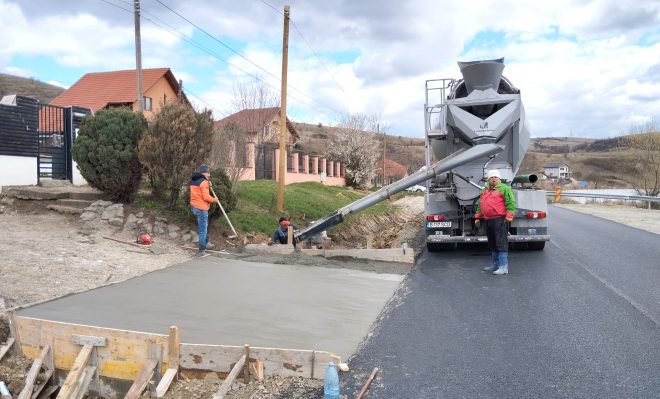 În paralel, se execută lucrări de realizare a acceselor la proprietăți pe acest sector, precum și de realizare de podețe transversale și timpane de beton.