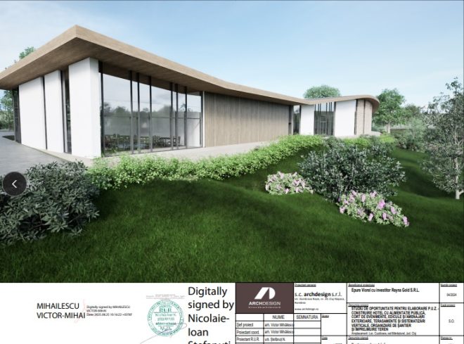 Scopul documentatiei este de a stabili regulile de amplasare a imobilului propus cu funcțiunea de hotel cu alimentație publică, cort de evenimente, edicule și amenajări exterioare, terasamente și sistematizări verticale, organizare de șantier și împrejmuire teren.