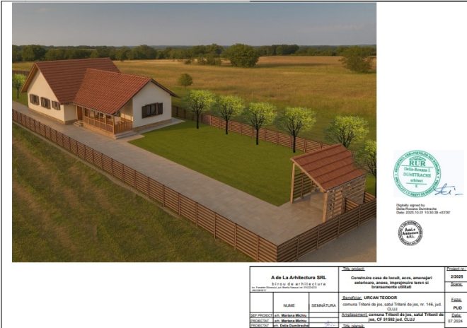 Proiectul a fost realizat de s.c. AdeLaArhitectura s.r.l, cu sediul în localitatea Silivașu de Câmpie, județul Bistrița-Năsăud.