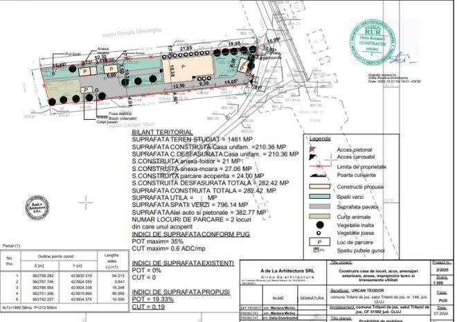 Parcela studiată este amplasată în intravilanul existent al satului Tritenii de Jos și se află la o distanță de aproximativ 4 km de centrul localității. Terenul are o suprafață de 1.461 mp și se află în proprietatea unui localnic, Teodor Urcan, care este și beneficiarul investiției.