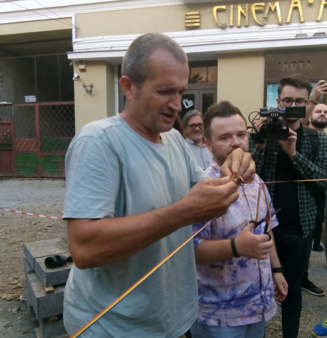 Fondatorul grupului de Facebook Clujul Civic, Szakats Istvan, a tăiat panglica și a ținut un discurs. El a explicat că strada trebuia finalizată încă din luna mai și, iată, suntem la începutul unui nou an școlar, iar cele 10 artere din acest proiect nu sunt terminate. Activistul civic l-a maimuțărit pe primarul Emil Boc, sigur, într-un mod exagerat. Edilul șef nu mai taie panglici de ani de zile, însă inaugurează toate obiectivele publice pe conturile sale de socializare.