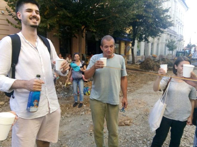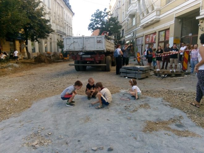 FOTO. L-au maimuțărit pe primar. Inaugurarea străzii Universității, inițiativa ironică a societății civile