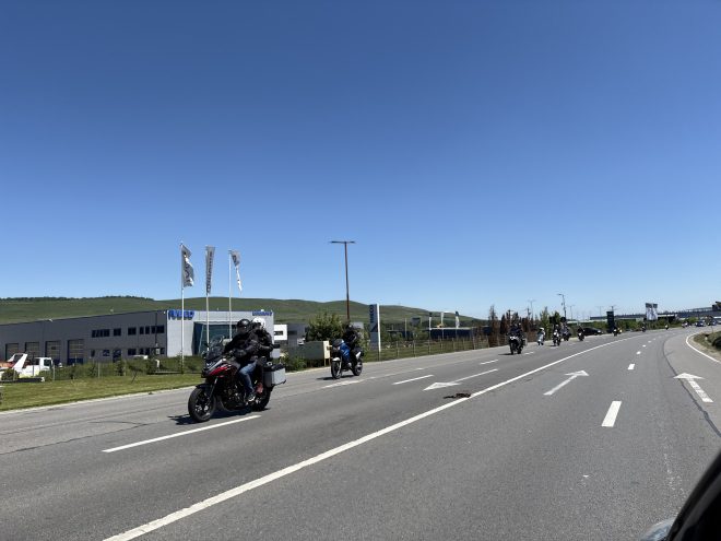 Coloana, organizată și escortată de echipaje ale Poliției Rutiere, a plecat la prânz din parcarea Ștrandului SUN din Cluj-Napoca, marcând debutul oficial al festivalului „Câmpeneasca Moto – La Plăcinte Înainte!”.