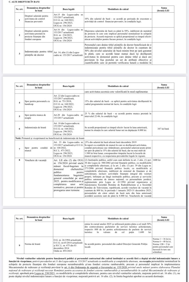 (conform Legii-cadru 153/2017 și OUG 156/2024)