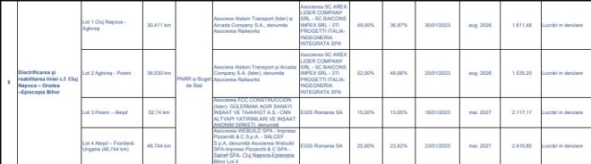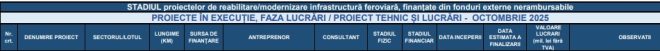 Compania Națională de Căi Ferate CFR s.a. a publicat pe site-ul propriu Stadiul proiectelor de reabilitare și modernizare infrastructură feroviară, finanțate din fonduri externe nerambursabile aferent lunii octombrie 2025.