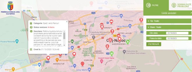 „Plafonul autoturismului proprietate personală este avariat constant de loviturile nucilor care cad din nucul a cărui coroană acoperă locul de parcare pe care staționează mașina. Locul de parcare (nr. 46) este deținut legal, conform abonamentului (…) și se află pe strada Grigore Alexandrescu la nr. 40-42. Vă rog să interveniți în sensul toaletării coroanei nucului. Mulțumesc!”, a transmis clujeanul nemulțumit.