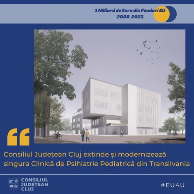 C𝐨𝐧𝐬𝐢𝐥𝐢𝐮𝐥 𝐉𝐮𝐝𝐞ț𝐞𝐚𝐧 𝐂𝐥𝐮𝐣 anunță că a început derularea proiectului cu 𝐟𝐢𝐧𝐚𝐧ț𝐚𝐫𝐞 𝐞𝐮𝐫𝐨𝐩𝐞𝐚𝐧ă ce vizează 𝐞𝐱𝐭𝐢𝐧𝐝𝐞𝐫𝐞𝐚 ș𝐢 𝐦𝐨𝐝𝐞𝐫𝐧𝐢𝐳𝐚𝐫𝐞𝐚 𝐀𝐦𝐛𝐮𝐥𝐚𝐭𝐨𝐫𝐢𝐮𝐥𝐮𝐢 𝐂𝐥𝐢𝐧𝐢𝐜𝐢𝐢 𝐝𝐞 𝐏𝐬𝐢𝐡𝐢𝐚𝐭𝐫𝐢𝐞 𝐏𝐞𝐝𝐢𝐚𝐭𝐫𝐢𝐜ă din cadrul Spitalului Clinic de Urgență pentru Copii Cluj-Napoca.