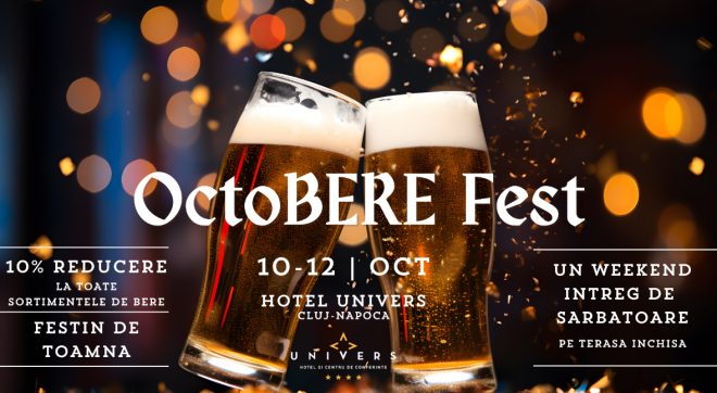 La Hotel Univers din Cluj-Napoca am pregătit o mulțime de surprize care să facă octombrie mai gustos și mai vesel: de la OctoBERE Fest, un weekend dedicat berii și preparatelor de sezon, până la oferte de Early Booking Corporate Party, speciale pentru companiile care își doresc să organizeze din timp petrecerile de final de an.