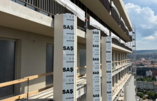 Ansamblul Oxygen va avea în total trei turnuri, fiecare cu câte 18 niveluri (17 etaje întregi și unul retras). Primul dintre ele este aproape de finalizare și deja se conturează clar atmosfera pe care dezvoltatorul a dorit să o creeze: locuire verticală, în mijlocul orașului, dar cu senzația de deschidere și spațiu.