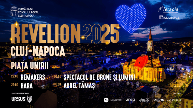 Clujenii sunt așteptați să-și petreacă noaptea de Anul Nou în Piața Unirii, unde Primăria și Consiliul local le-au pregătit un spectacol cu drone, trupe cunoscute și un recital marca Aurel Tămaș la câteva minute după deschiderea șampaniei.