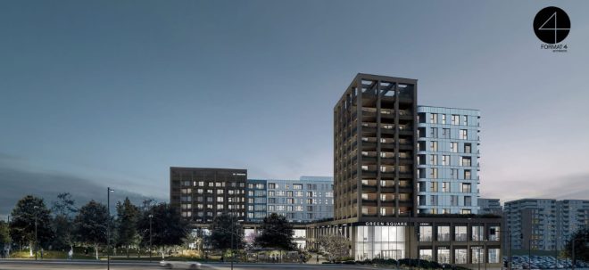 Ansamblul Green Square, care va fi dezvoltat de fondul de investiții STK, a fost proiectat de biroul Format 4 Architects; iar la faza PUZ au lucrat arhitecții de la TransForm.