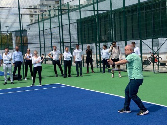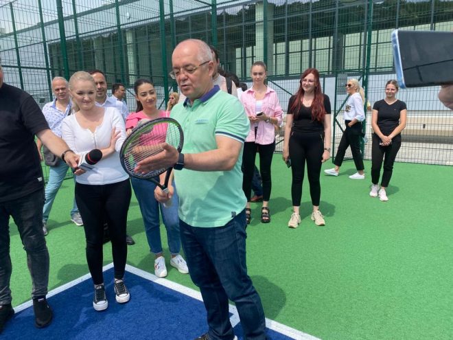 La inaugurarea noii baze sportive, Boc a jucat baschet, fotbal, tenis de masă și de câmp.