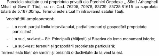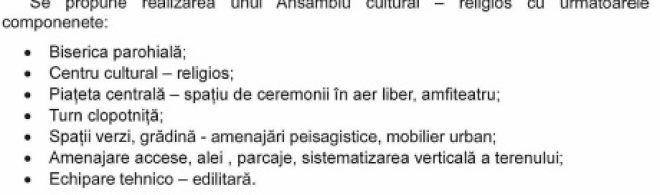 Un alt proiect prevede construirea unui ansamblu parohial în localitatea Tăuți, comuna Florești, pe o suprafață de 5.187 de metri pătrați.